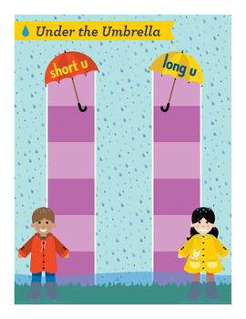 Short and Long U Phonics Game. Well-designed and fun game for reinforcing important phonics concepts! Practice long and short u sounds while you try to get both of your kids to their umbrellas in this fun puddle splashing themed mini path game, Under the Umbrella.
